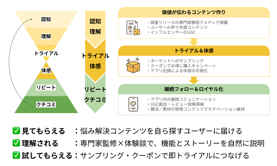 ウンログは、腸活をはじめとする健康ブランドの「お試し」から「クチコミ」までトータル支援します。